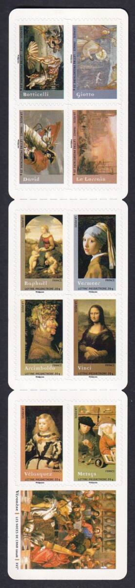 59 フランス【未使用】<「2008 優先郵便用切手 / 絵画・傑作品」 10種完(セルフ糊・切手帳) >