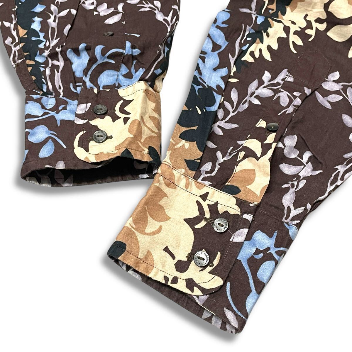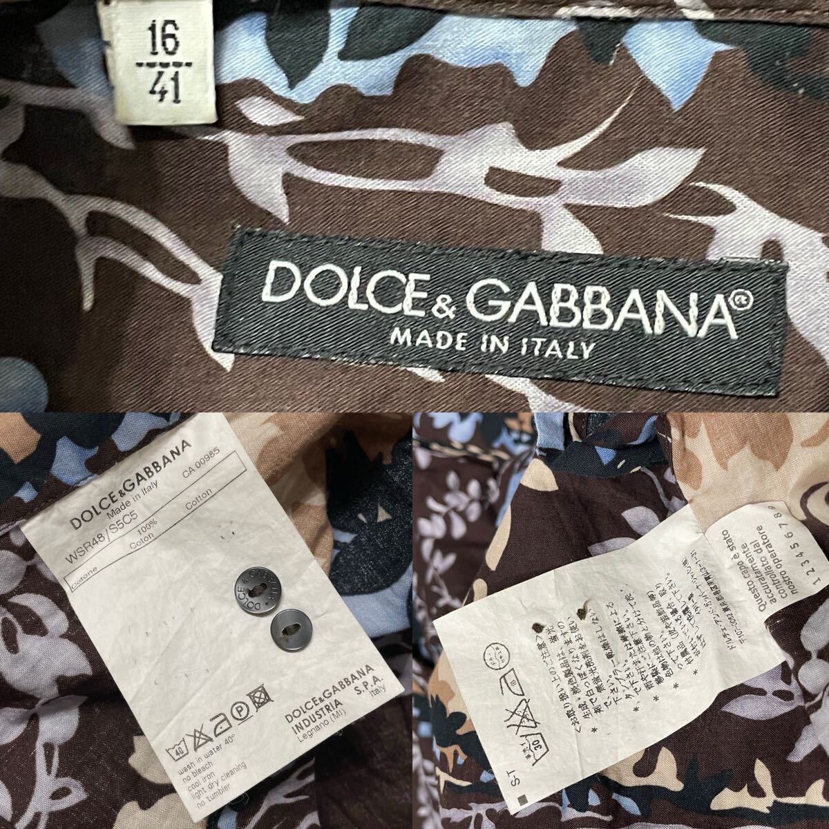 ★ 国内正規品 DOLCE &GABBANA ドルチェ&ガッバーナ WSR48 マルチリーフ 長袖コットン ドレスシャツ 41 ブラウン系 イタリア製 メンズ 41