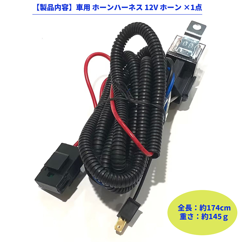 Product name: 車用 ホーンハーネス 12V ホーン ヒューズワイヤリングハーネスリレーキット カーホーン 交換用 耐熱性二股分岐ハーネス