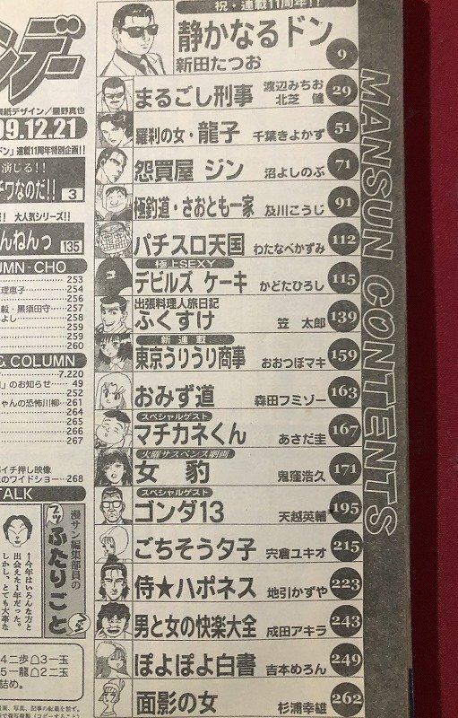 z▽▽ 週刊 漫画 サンデー 平成11年12月21日発行 祝・連載11周年「静かなるドン」 ほか 白泉社 当時物 / T9
