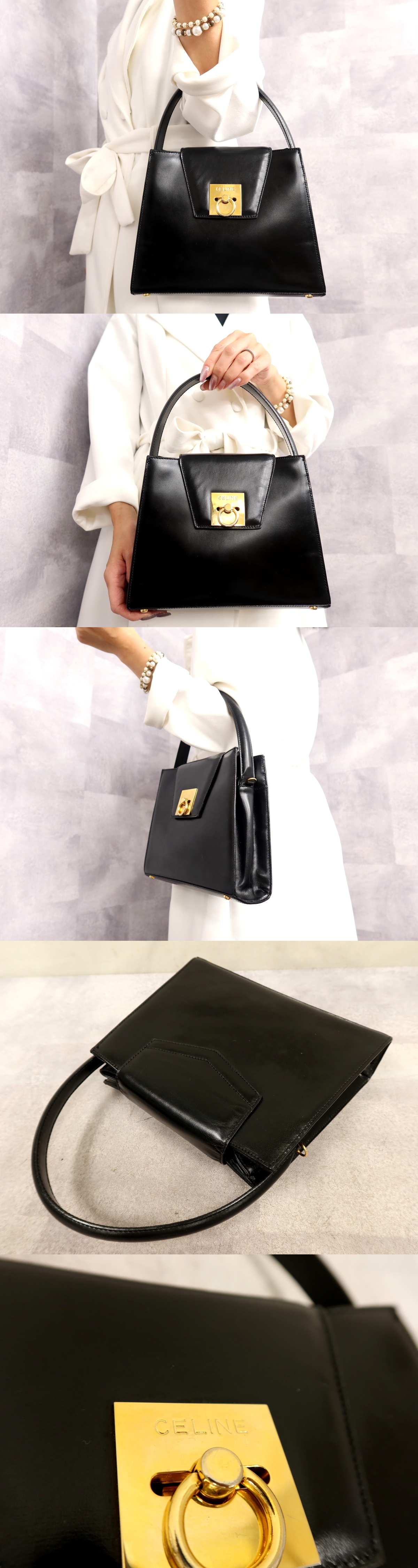 Product name: ●超美品●CELINE セリーヌ●ガンチーニ●トップハンドル●カーフ レザー 本革●ハンド バッグ●黒●ゴールド金具●腕掛け●収納●Js62014