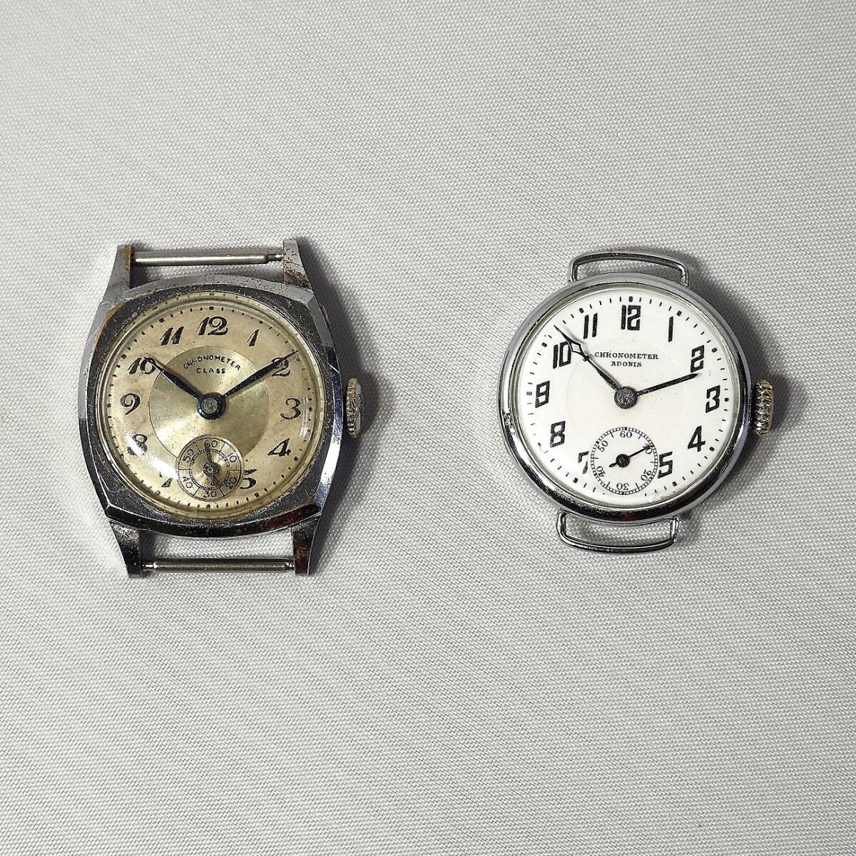 稼働品2本セット Chronometer 吉田時計 菱形にYS印 Chronometer Adonis(スイス製) 機械式時計 本革パリス環式ベルト付 スモセコ