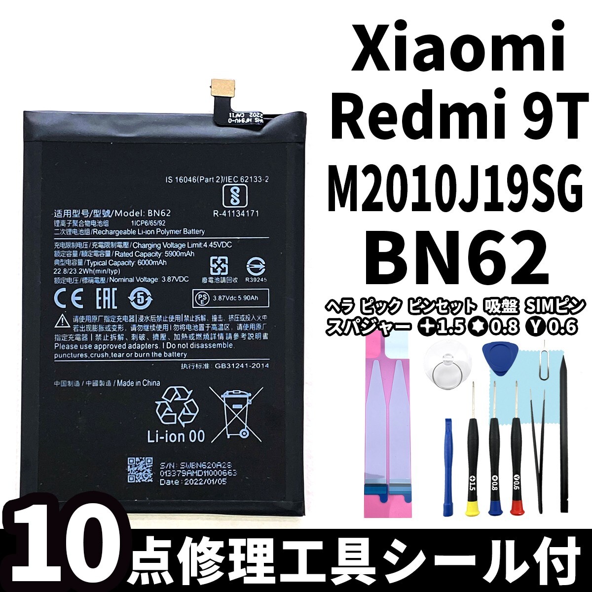 Product name: 国内即日発送!純正同等新品!Xiaomi Redmi 9T バッテリー BN62 M2010J19SG 電池パック交換 内蔵battery 両面テープ 修理工具付