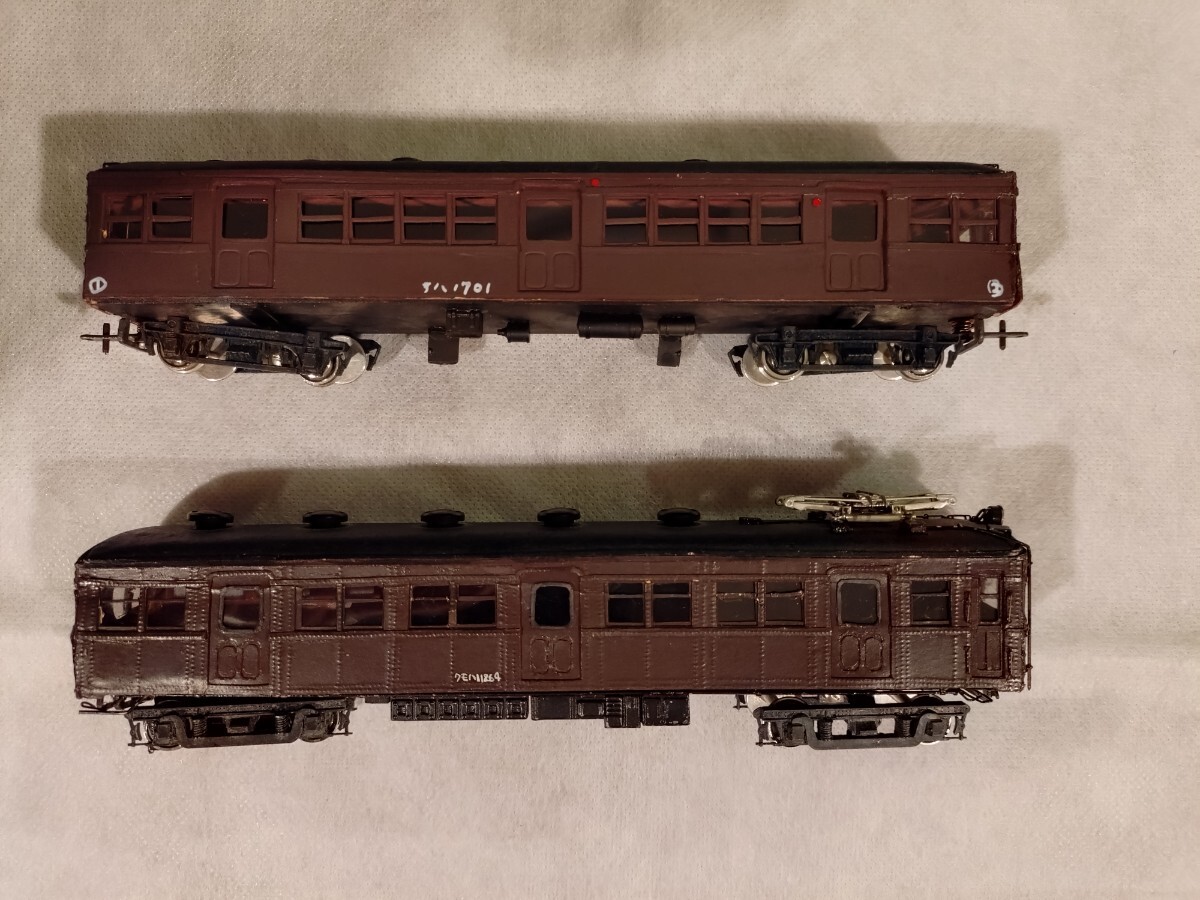 動力はクモハ11の天賞堂製パワートラック1基で、走行は両方向ともスムーズです。サハ17との編成走行も問題ありません。2両とも前照灯・尾灯・室内灯は点灯しない造りです。