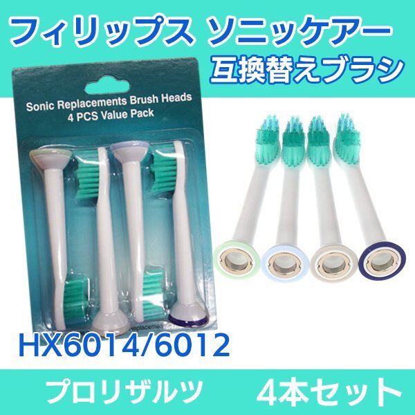 送料無料 PHILIPS フィリップス ソニッケア HX6014 6012 4本 / sonicare プロリザルツ ソニケア 互換替えブラシ 電動歯ブラシ用