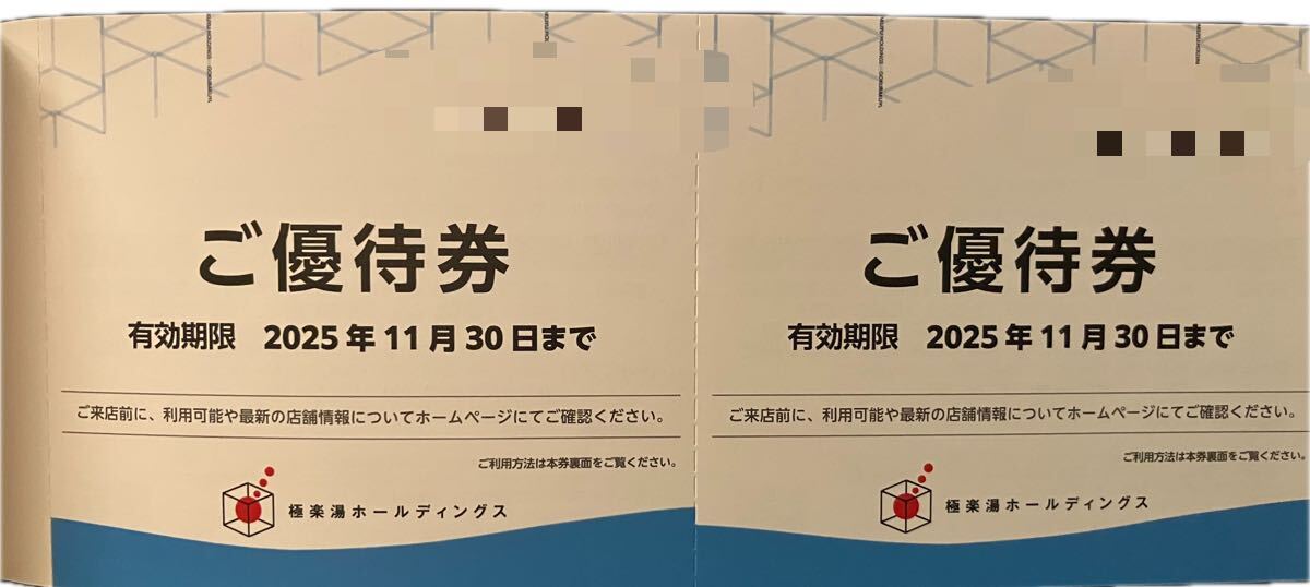 ミニレター込★即日発送★ 極楽湯 株主優待 2枚★ 2025年11月30日期限