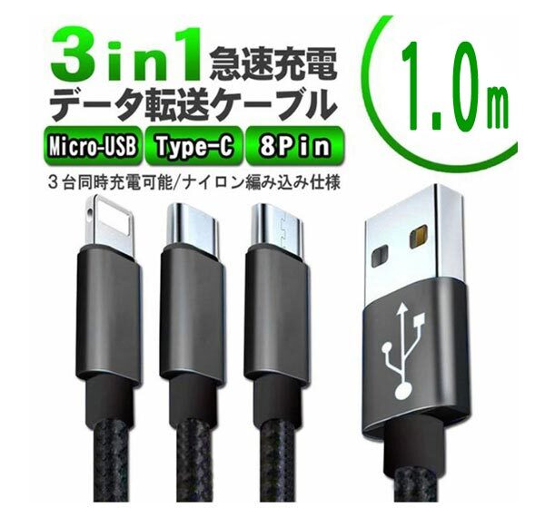 (1122)▼Arjan 3way 充電ケーブル ブラック 10点