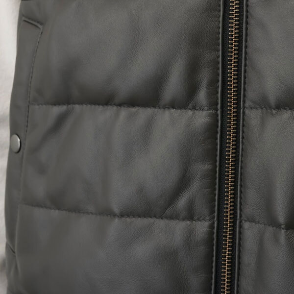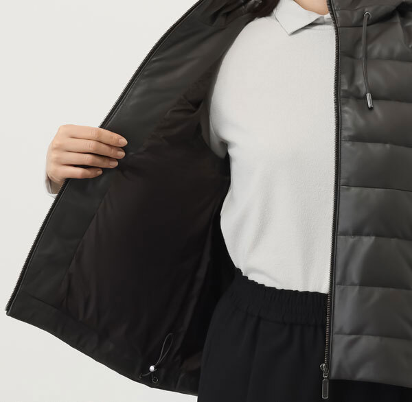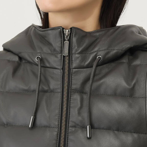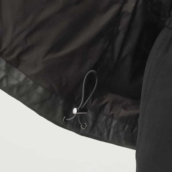 フードは、内側にもレザーを使用した贅沢なつくり。