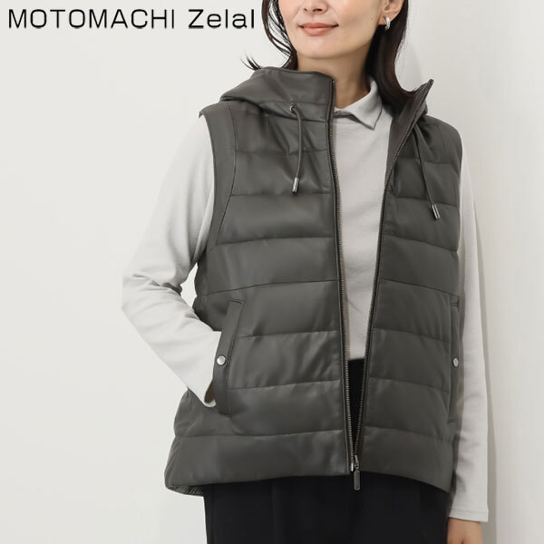 元町ゼラール ソフトラムレザー フーディーダウンベスト S セピア 60000円相当(柊)