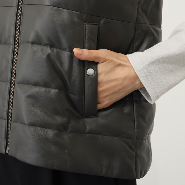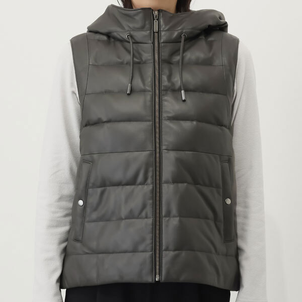 Product name: 送料300円(税込)■mb332■元町ゼラール ソフトラムレザー フーディーダウンベスト S セピア 60000円相当(柊)【シンオク】