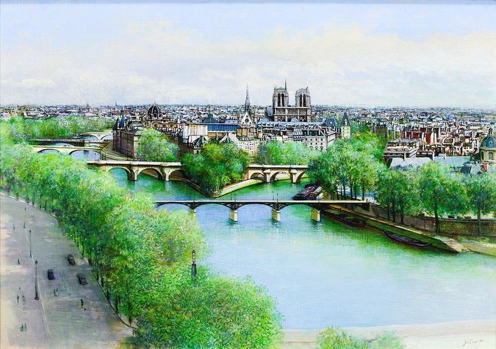 Product name: 【真作】【WISH】ジャン・ツノスコ Jan Znosko「セーヌ河とシテ島」油彩 15号 大作 2004年作 ◆ノートルダム パリ街   #25122781