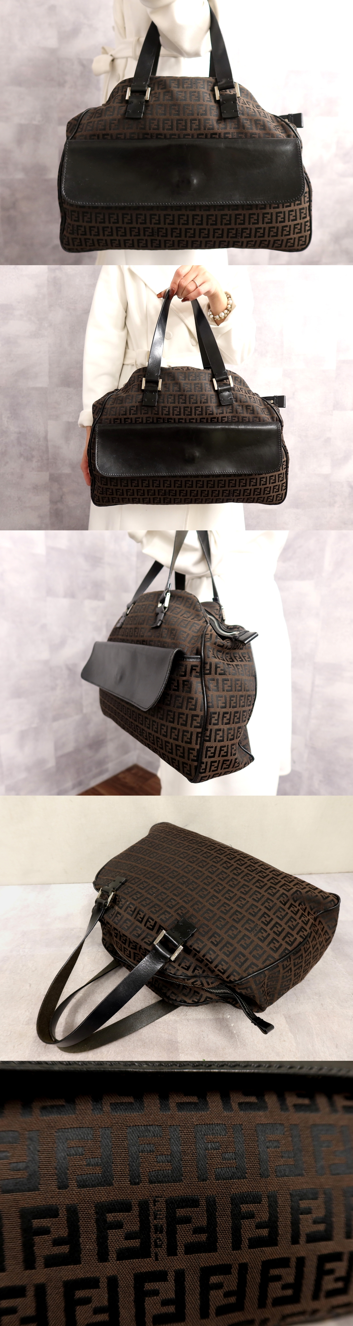 Product name: ●超美品●FENDI フェンディ●ズッキーノ●キャンバス カーフ レザー 本革●ハンド バッグ●黒 ブラウン●シルバー金具●A4 収納●Js64091