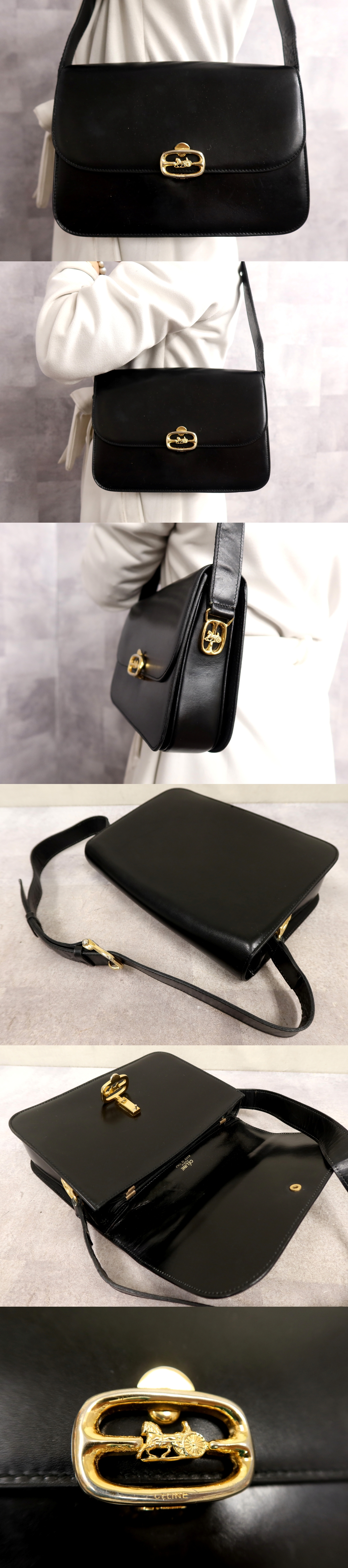 Product name: ●超美品●CELINE セリーヌ●馬車金具●フラップ●カーフ レザー 本革●ショルダー バッグ●黒●ゴールド金具●肩掛け●かばん●Js65761