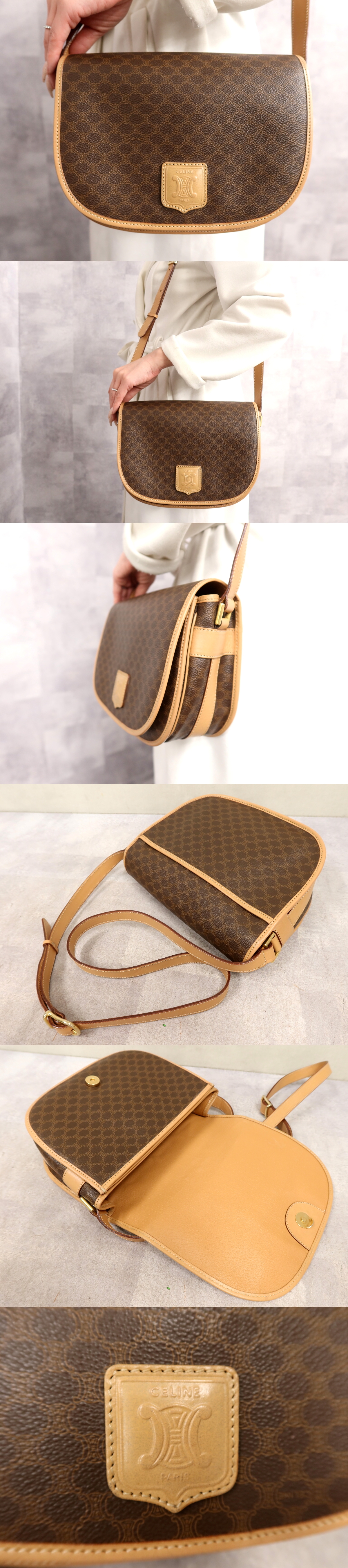 Product name: ●超美品●CELINE セリーヌ●マカダム●PVC カーフ レザー 本革●ショルダー バッグ●ブラウン系●ゴールド金具●斜め掛け●収納●Js66384