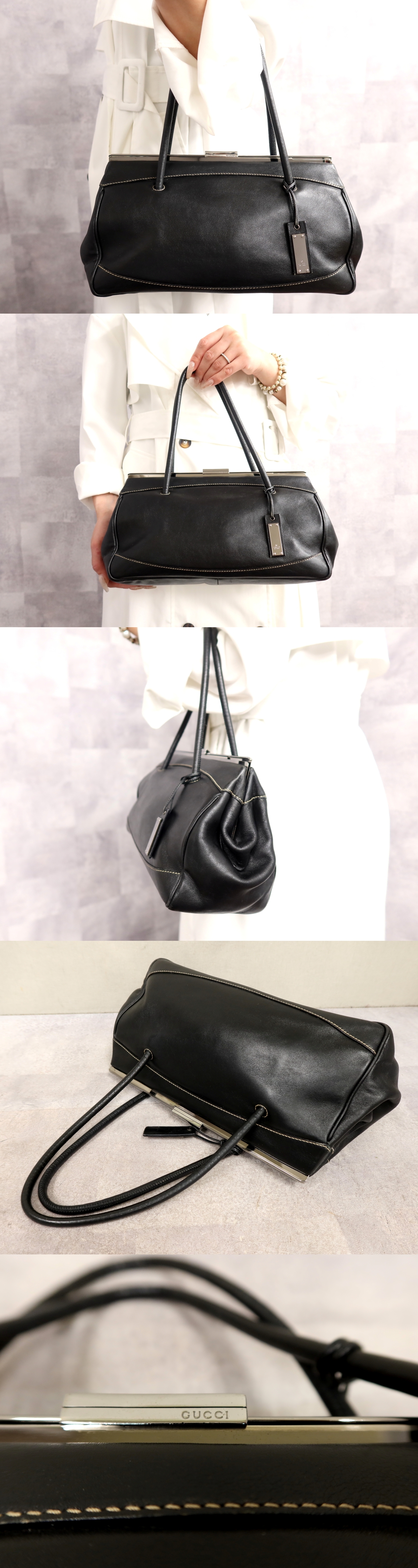 Product name: ●超美品●GUCCI グッチ●カーフ レザー 本革●がま口 ハンド バッグ●黒●シルバー金具●イタリア製●腕掛け●かばん●Js66542