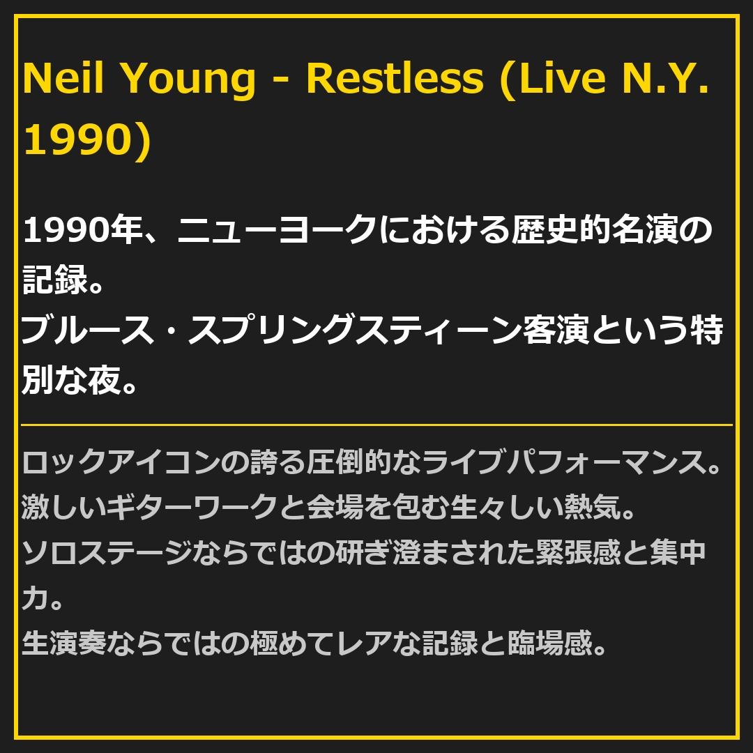 Product name: ● Neil Young / ニール・ヤング ● Restless (Live N.Y. 1990)