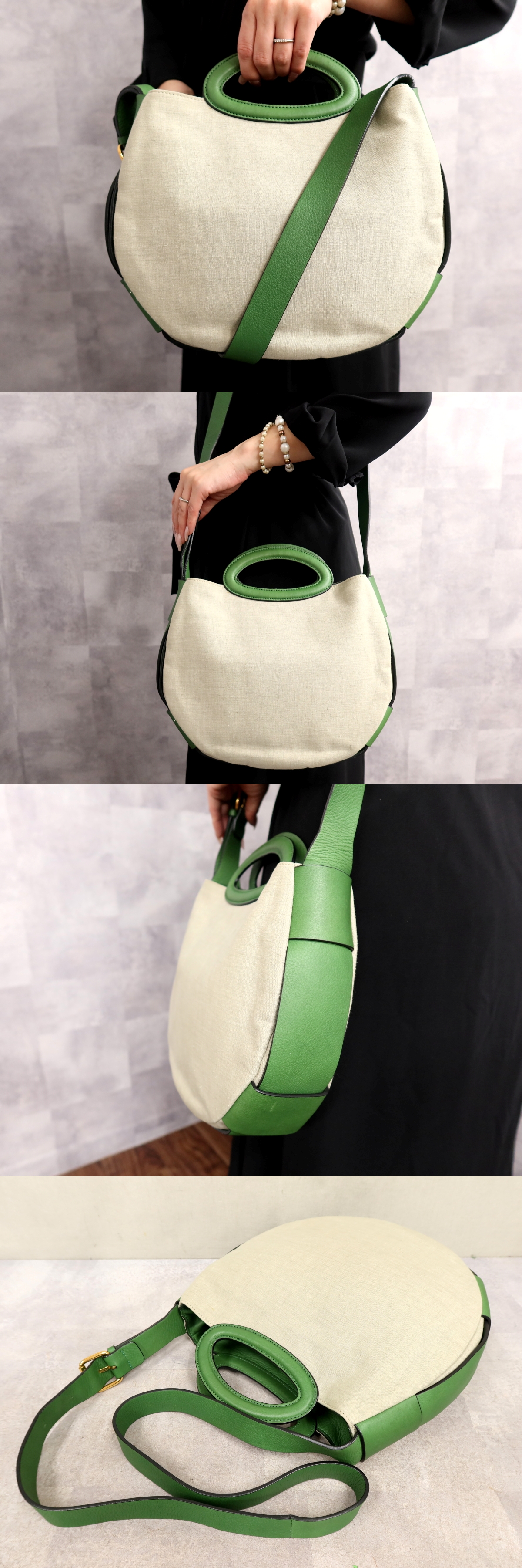 バイカラー キャンバス カーフ レザー 2way ハンド バッグ