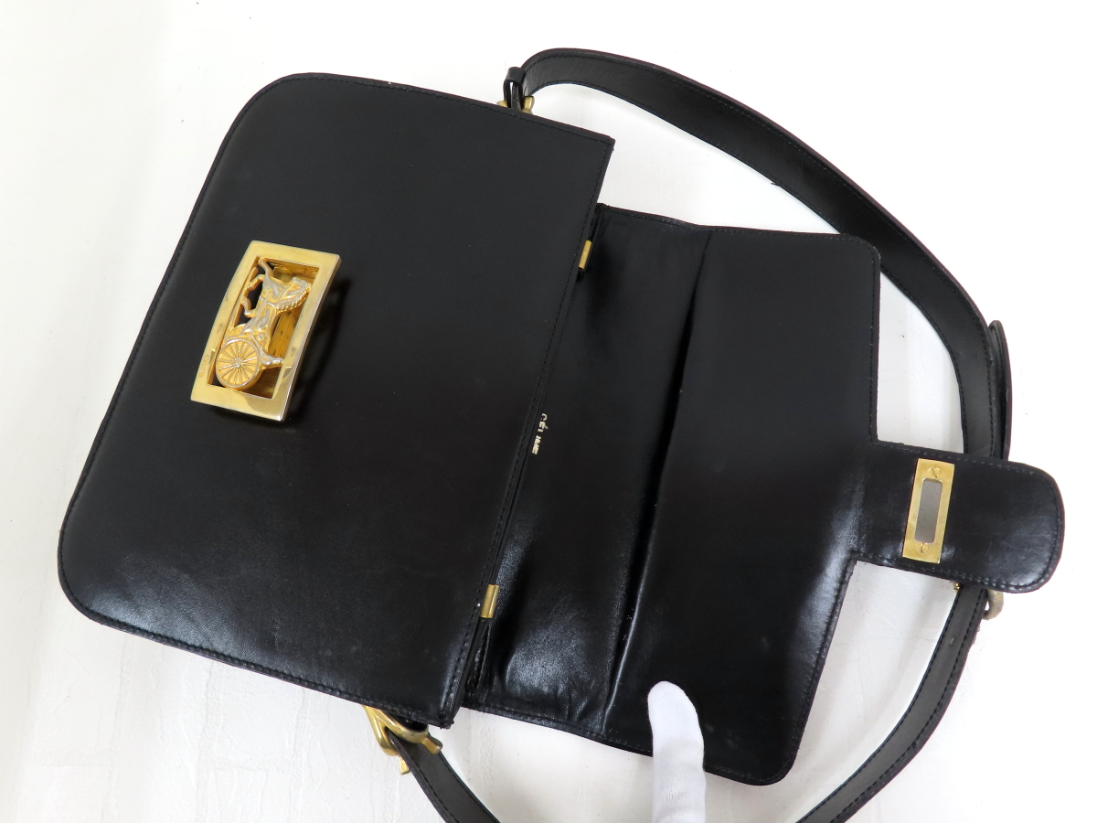 Store ◆美品◆CELINE セリーヌ◆カーフ レザー 本革◆ワン ショルダー バッグ◆ブラック ゴールド金具◆馬車ロゴ金具◆フラップ◆A16863