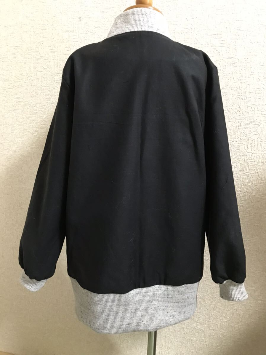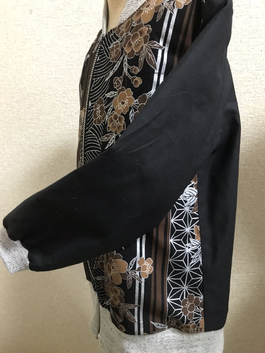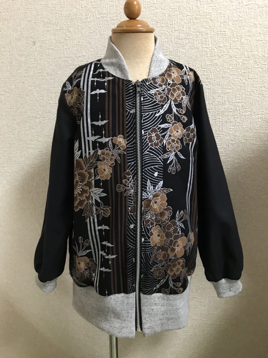 和柄の生地でブルゾンをハンドメイドいたしました。素材は表地は綿です。
