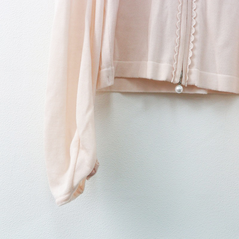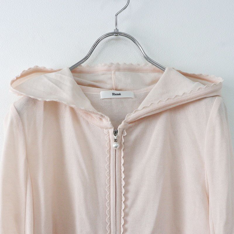 Product name: 美品 ルネ Rene パールストーン装飾 袖口リボン ダブルジップアップ ニットフードパーカー 36 /ピンク トップス【2400014120356】