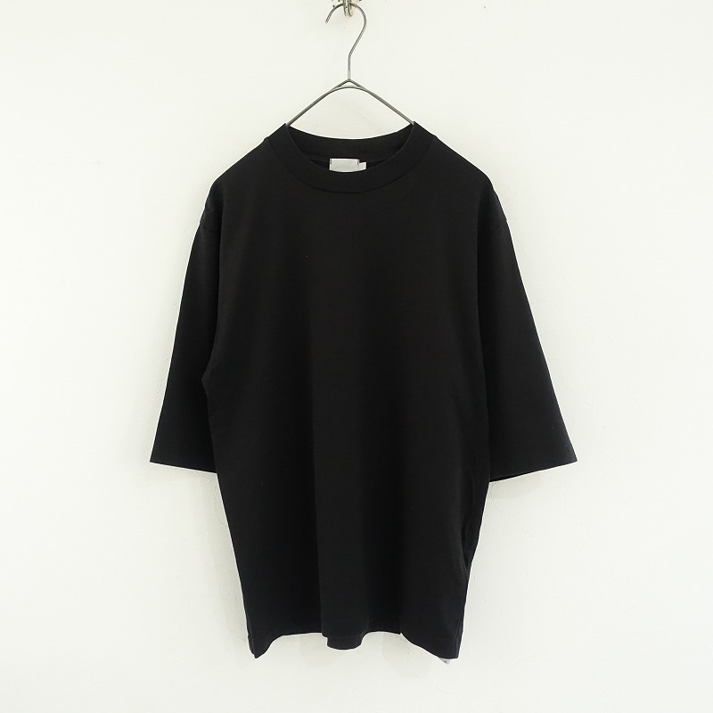 handvaerkのコットンクルーネックハーフスリーブTシャツです。カラーはブラックでさらりとした手触りの天竺地で仕立てられております。シンプルなアイテムです。