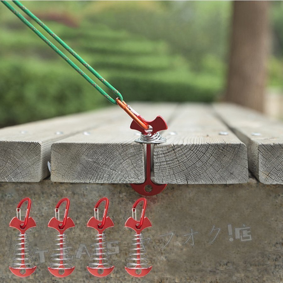 ☆新品テントデッキ ウッドデッキ ペグ カラビナ付き ペグ ウッドデッキ キャンプ場 使いやすい 取り外しも簡単 4個セット