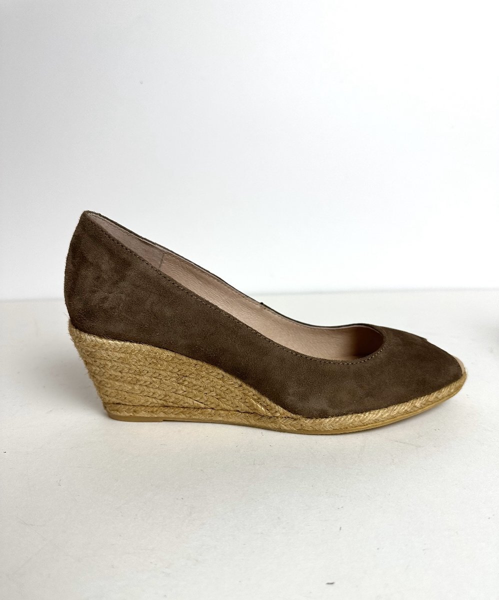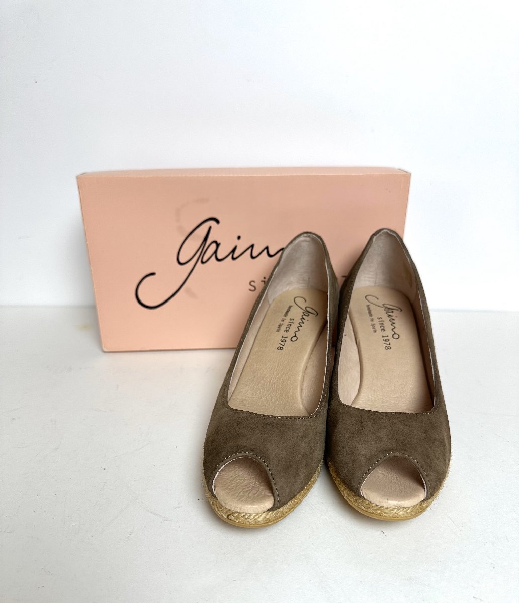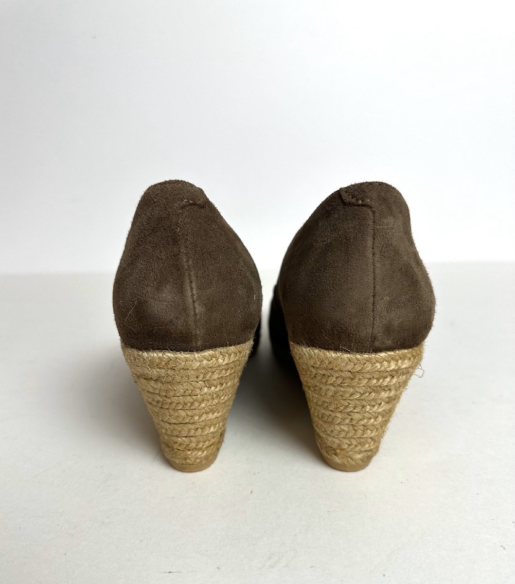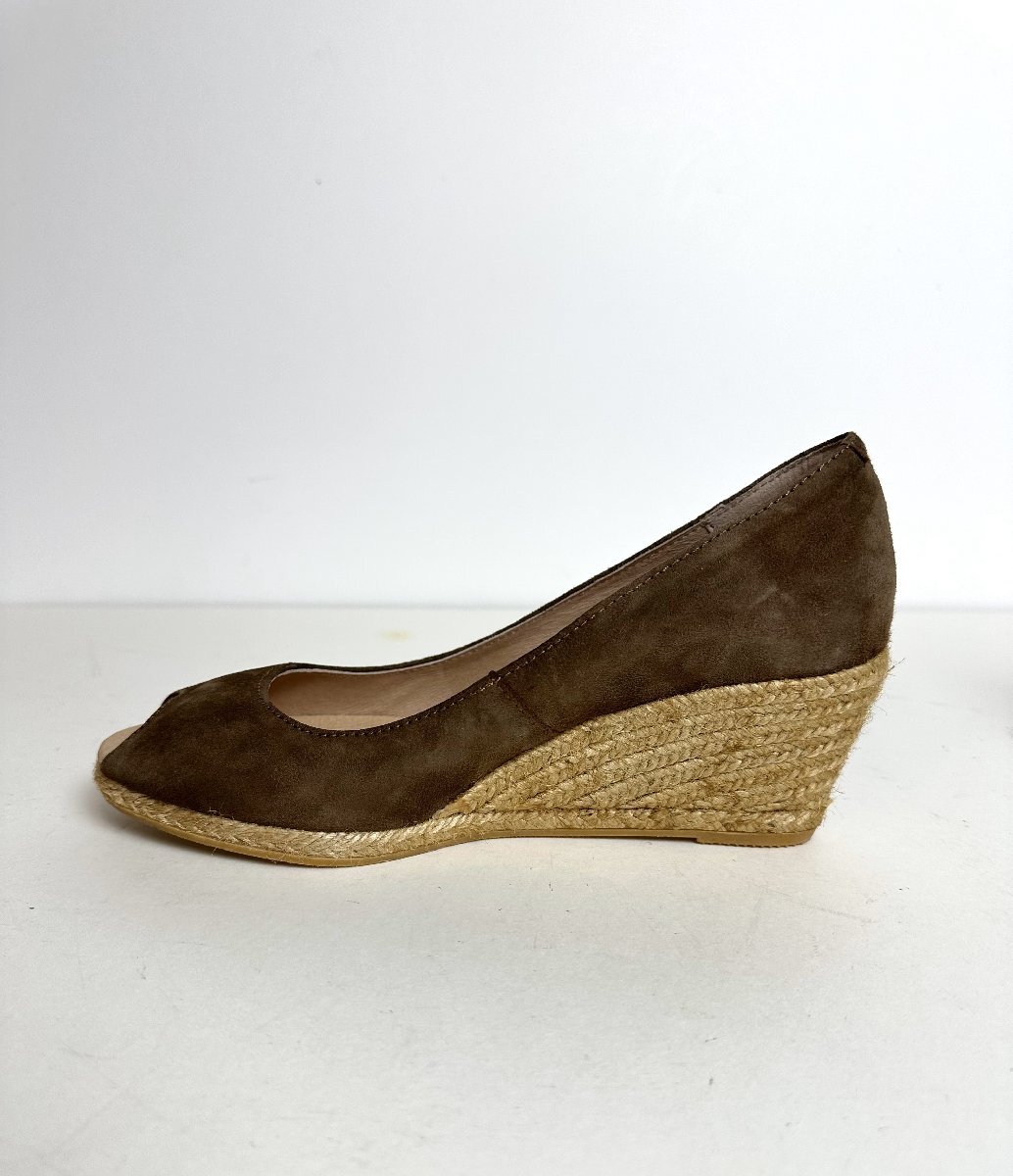gaimo(ガイモ/スペイン製)レディース/オープントゥ エスパドリーユパンプス/スエード×ブラウン/サイズ38/約24cm