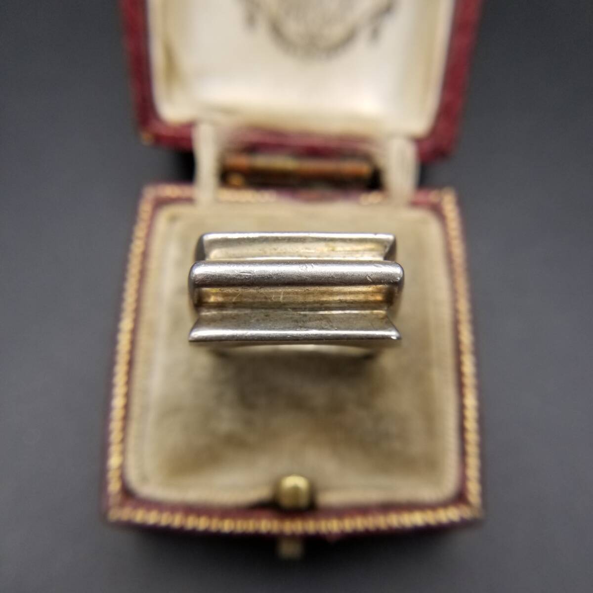 メキシコ 925 シルバー 3段 レイヤード 横長 ヴィンテージ シグネット リング 銀 指輪 シンプル スタイリッシュ TAXCO タスコ Y21-U