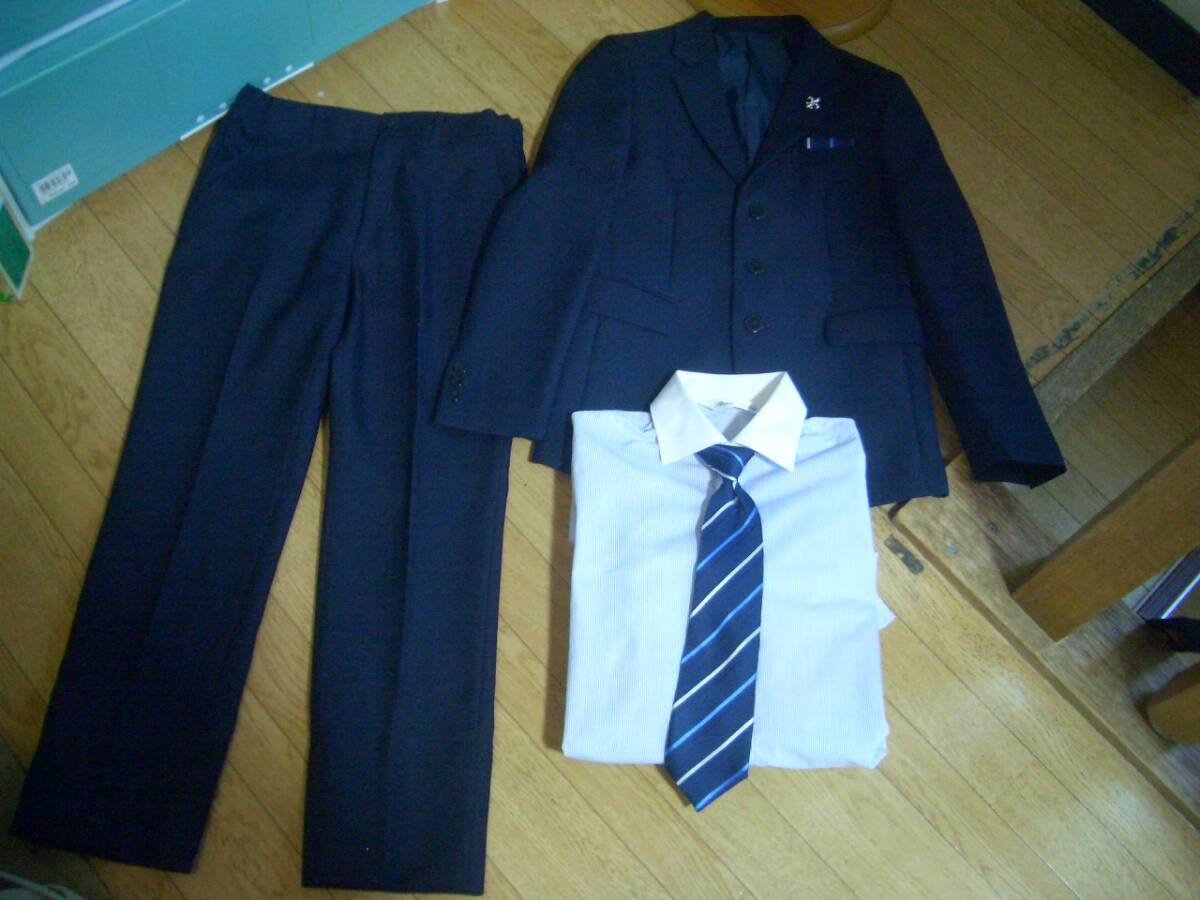男の子*卒業式フォーマルスーツ*150*濃ネイビー*ブルーピンストライプシャツ*ネクタイポケットチー+おまけ飾りピン付き*美品