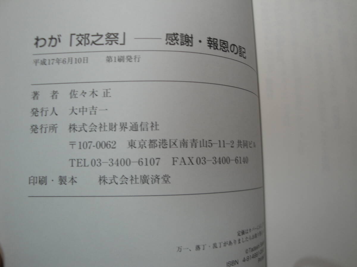 Product name: ☆佐々木正著(シャープ副社長)《感謝・報恩の記”わが「郊ノ祭」”(半導体の歴史と経営の本質がわかる本》☆送料170円 高度成長 運営