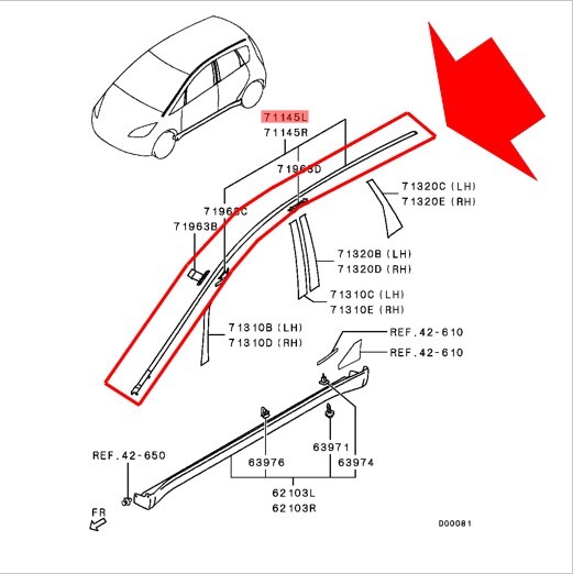 三菱 純正 コルトラリーアートバージョンRのルーフモール (左右)とクリップのセットです。