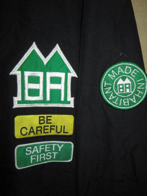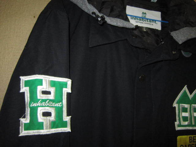 超レア!正規品 inhabitant インハビタント 刺繍ワッペン フーディ スノボ ウエア 黒 L スノーボード ジャケット 安全第一