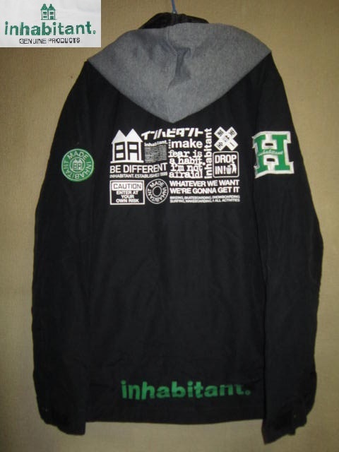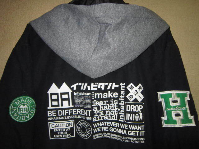 Product name: 超レア!正規品 inhabitant インハビタント 刺繍ワッペン フーディ スノボ ウエア 黒 L スノーボード ジャケット 安全第一