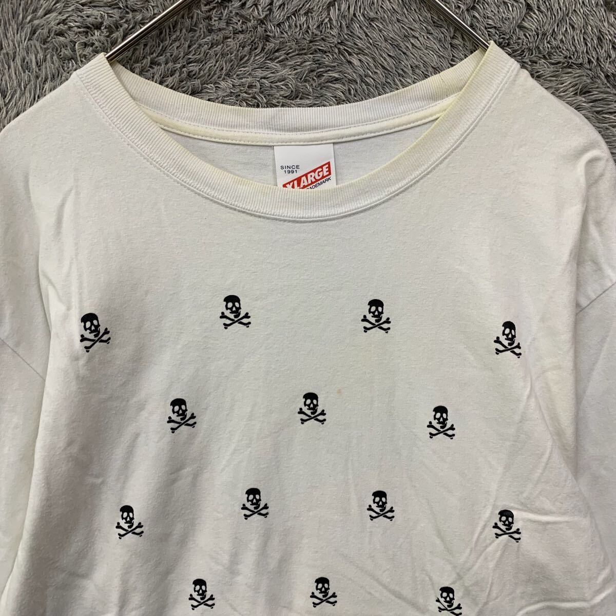 Product name: XLARGE エクストララージ ロンT 長袖Tシャツ カットソー サイズL ホワイト 白 スカル総柄 コットン メンズ トップス 最落なし(E)