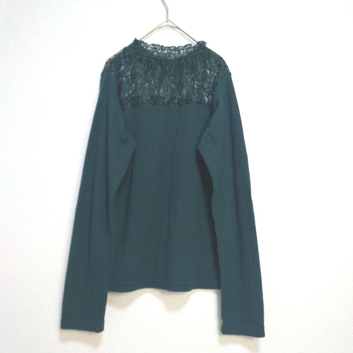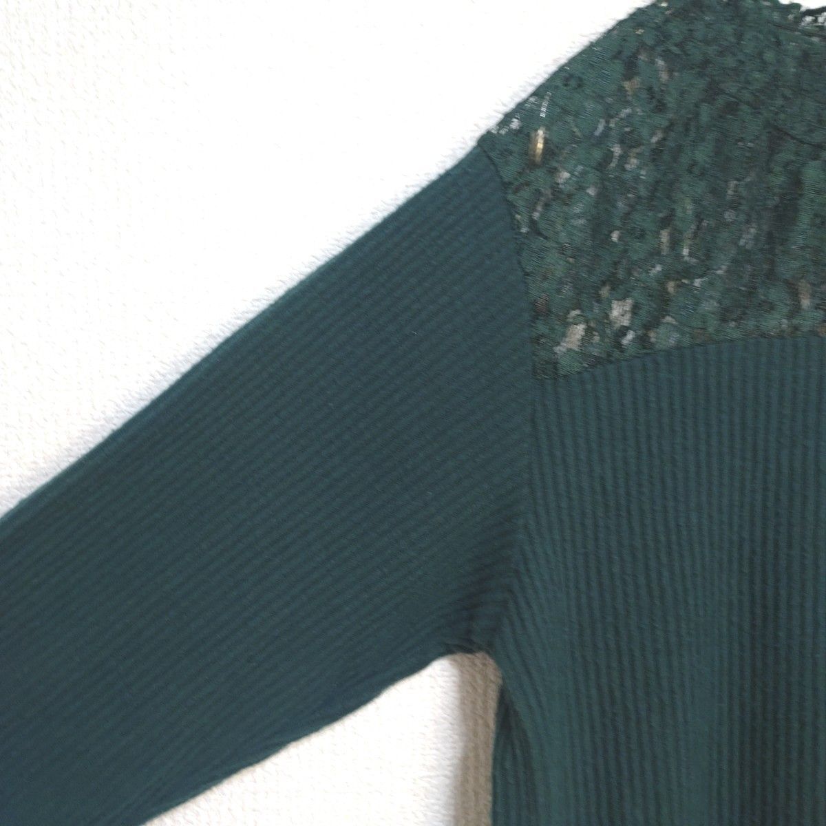 Product name: 長袖 カットソー リブニット トップス レース 異素材ドッキング 薄手 伸縮性◎ 緑 グリーン L