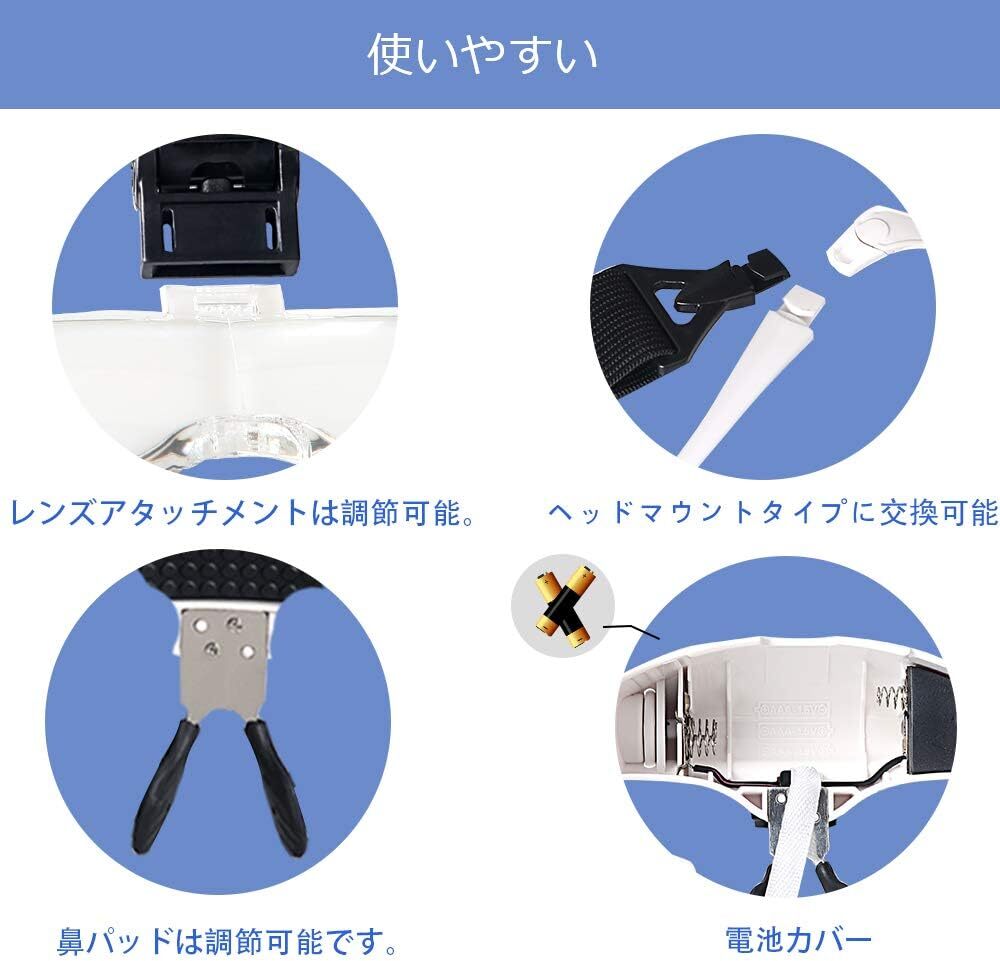 Product name: BIJIA ヘッドルーペ めがね型 ルーペ 拡大鏡 拡大眼鏡 読書 編み物 5レンズ交換調節 LED付拡大鏡 メガネゴムバンド両用