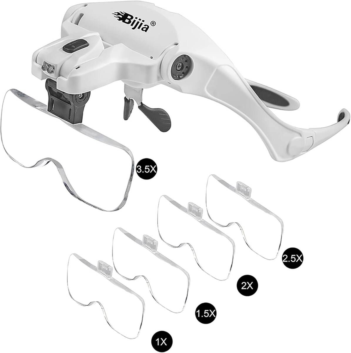 BIJIA ヘッドルーペ めがね型 ルーペ 拡大鏡 拡大眼鏡 読書 編み物 5レンズ交換調節 LED付拡大鏡 メガネゴムバンド両用
