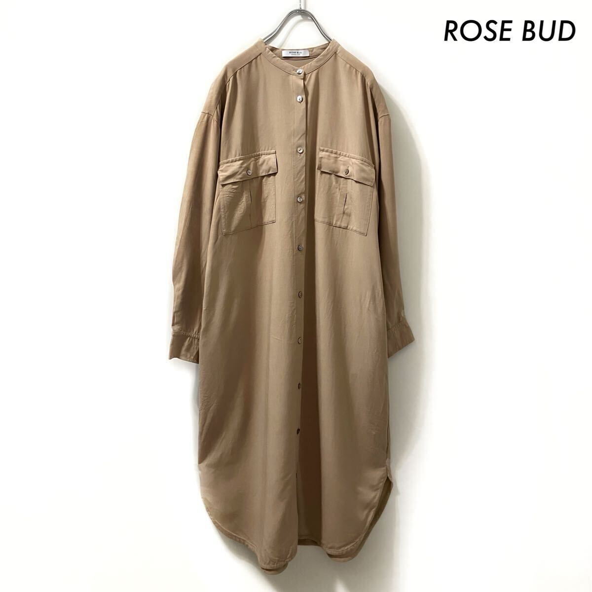 ROSE BUD ローズバッド★長袖シャツワンピース バンドカラー ブラウン 茶色