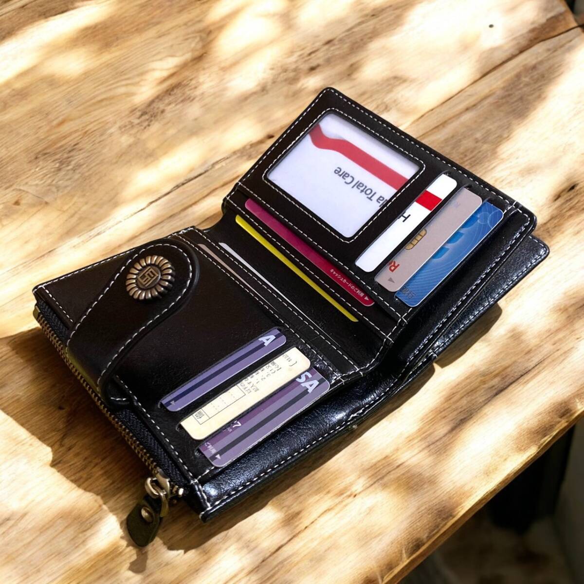 Product name: 大容量 三つ折り財布 コンパクト財布 メンズ レディース カード 小銭入れ 黒