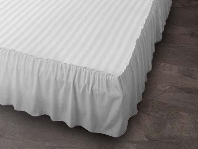 ボックスシーツ フリル付き 綿100% サテン 高密度 ホテル感覚 置くだけ簡単設置 クイーン 幅160x200x35cm ストライプ柄 ホワイト