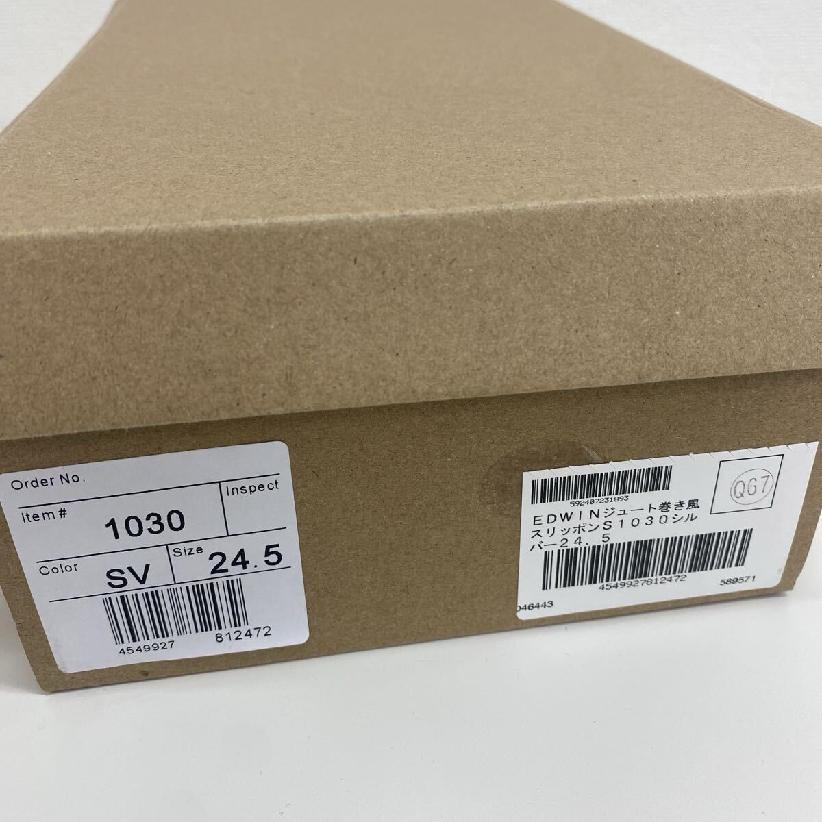 refle● 未使用保管品 EDWIN ジュート巻き風スリッポンS1030 靴 シルバー 24.5cm