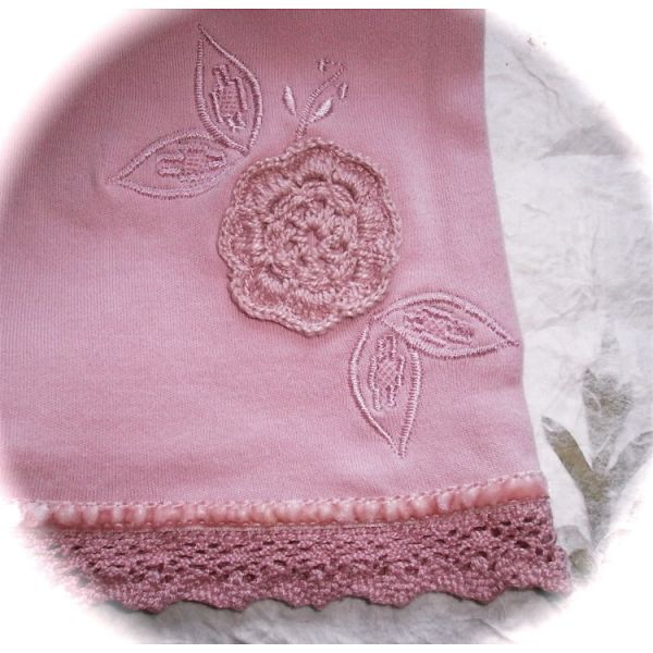 クロシェ編みのバラのモチーフが3箇所に付いていて、お洒落です。