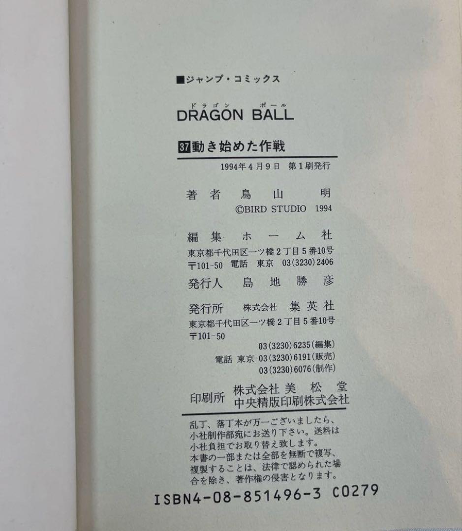 鳥山明先生の「ドラゴンボール」37巻、貴重な初版本です!