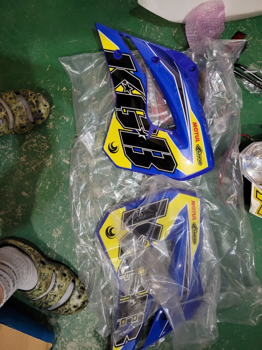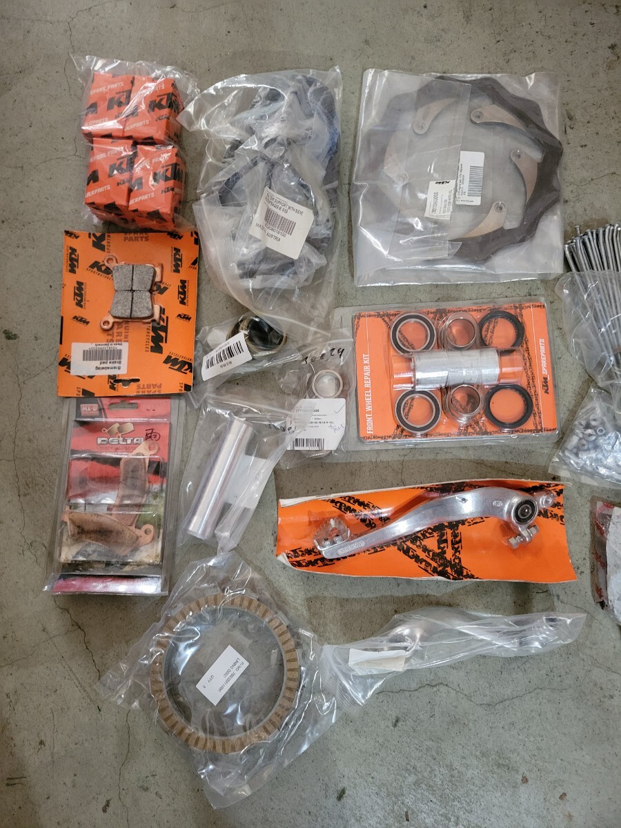 2009年式 新車で購入後1年位レースに出ましたが、その後は林道等で使用した程度。メーターで稼働469時間、走行13838km。専門店でエンジン腰上1回、サスペンションを2回のオーバーホール済。エンジンオイルはMOTUL300vのみ使用で、四月にもオイル交換したけど、その後走行なし。予備パーツは多数で写真参照、シュラウドは未使用、消耗品はだいたいKTMと共通。車検対応パーツを付いてます。近県ならトランポで予備パーツと共に実費相当額で配送します。または、BASなら配送手配してくれたら京都デポまで持ち込みます、予備パーツはクロネコかな。