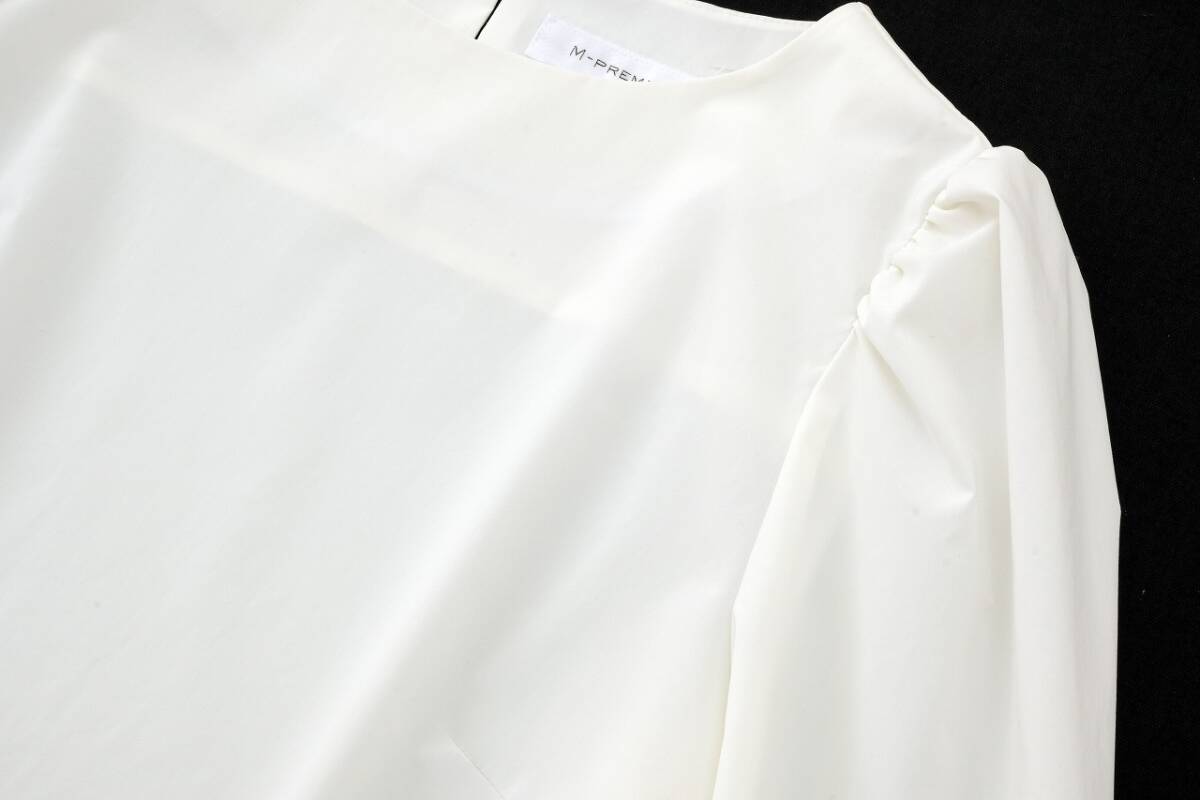 肩にギャザーを施したふんわりスリーブが女性らしい印象のプルオーバーブラウス。