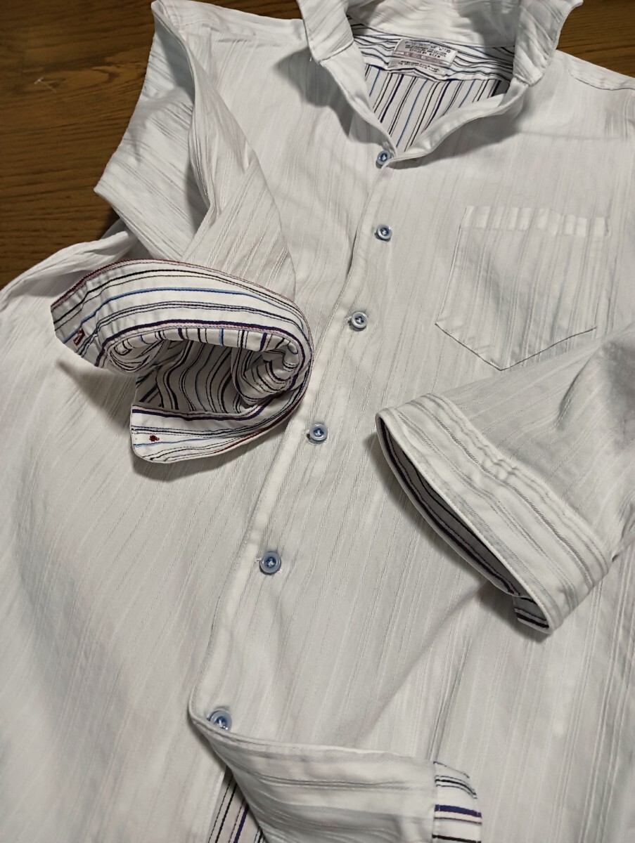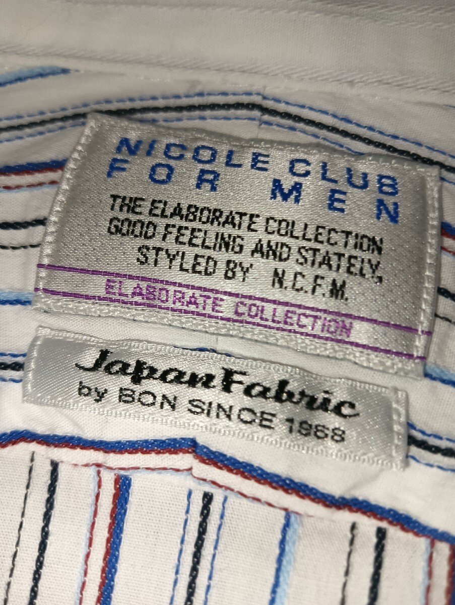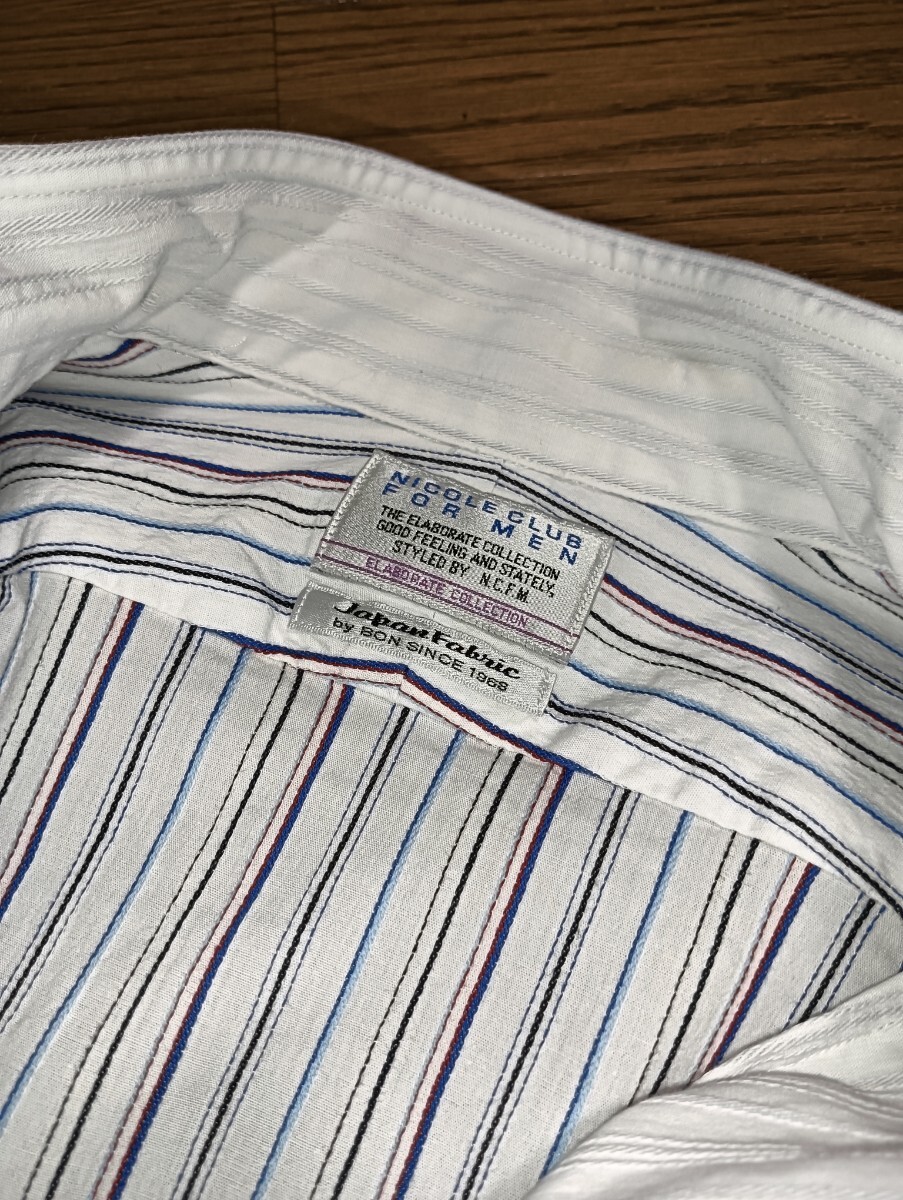 Product name: ニコルクラブフォーメン NICOLE CLUB FOR MEN/JAPAN FABRIC/ジャパンファブリック/七分袖シャツ メンズ サイズ50ストライプ裏地/襟ワイヤー