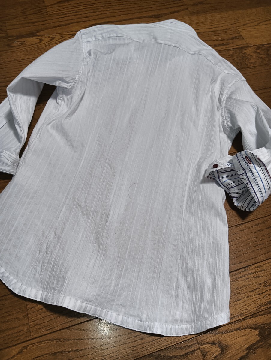 USEDですが目立つ汚れなくまだまだご活躍いただけます。新品ではないので使用感は少しはございますがUSED趣向のお方でしたら問題なくご活躍いただけます。サイズ50身幅49着丈69袖丈43肩幅43cm色:白 サイズ50ですがタイトと思います。採寸値を参考にしてください。素材は写真でご確認ください。ストレッチ感あります。JAPAN FABRIC/ジャパンファブリックです。