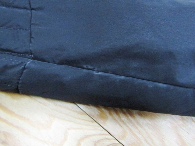 中古品ですので使用感、経年使用によるアタリや褪せ・擦れや薄汚れ、襟周りに汚れ、左右袖先に汚れや擦れ・ゴムの伸び、左右ポケット口・裾周りに汚れや擦り切れ、左袖内側縫目に擦れと多少の擦り切れ(写真7枚目)、左背中裾上に擦れ(写真8枚目)、裏地右襟下に小さな破れ(写真9枚目)、裏地品質タグに劣化剥がれ(写真6枚目)、裏地右裾上サイドに擦れ(写真10枚目)はありますが、その他特別に目立った汚れ、破れなどはなく、全体的にはまだまだ着て頂ける状態であると思います。
