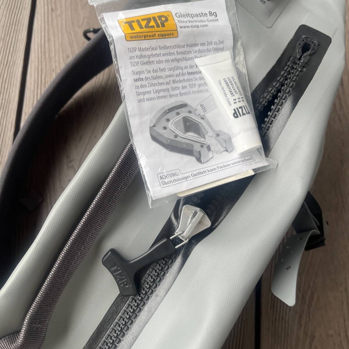 ドイツ製ジッパーを使用、付属のグリースをほんの少し、クローズする部分につけると、