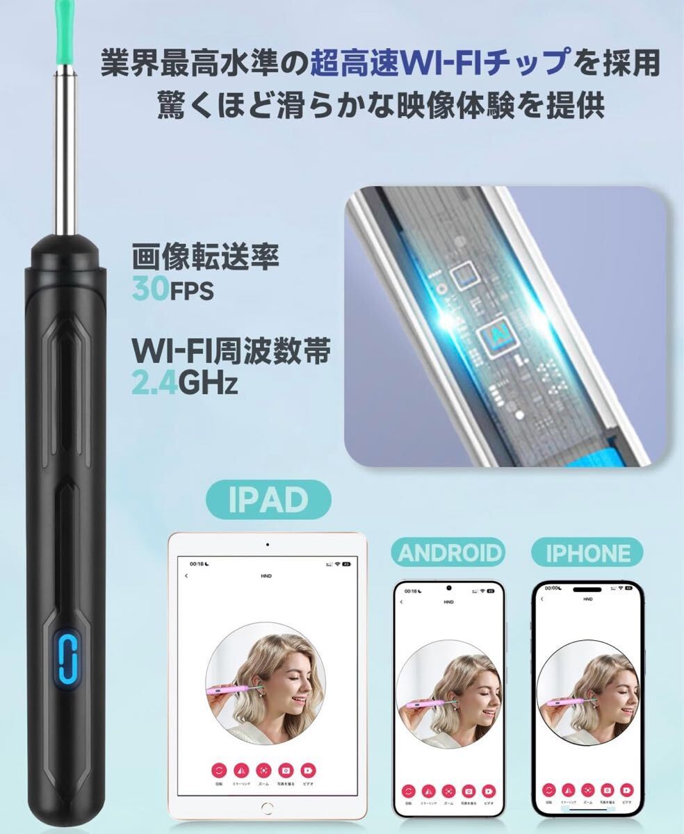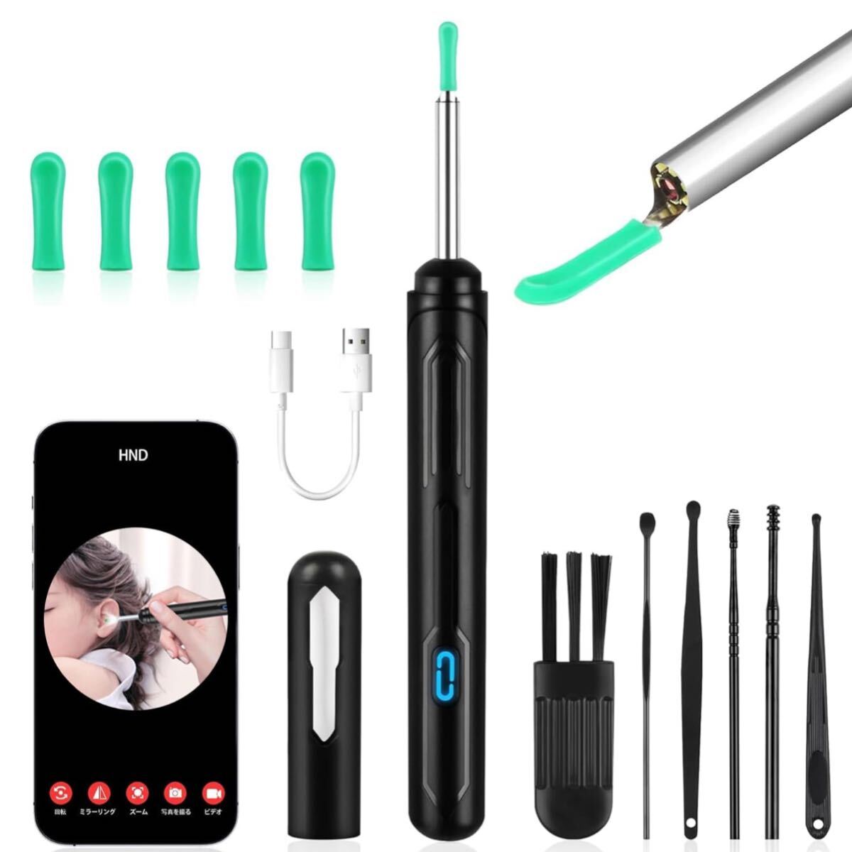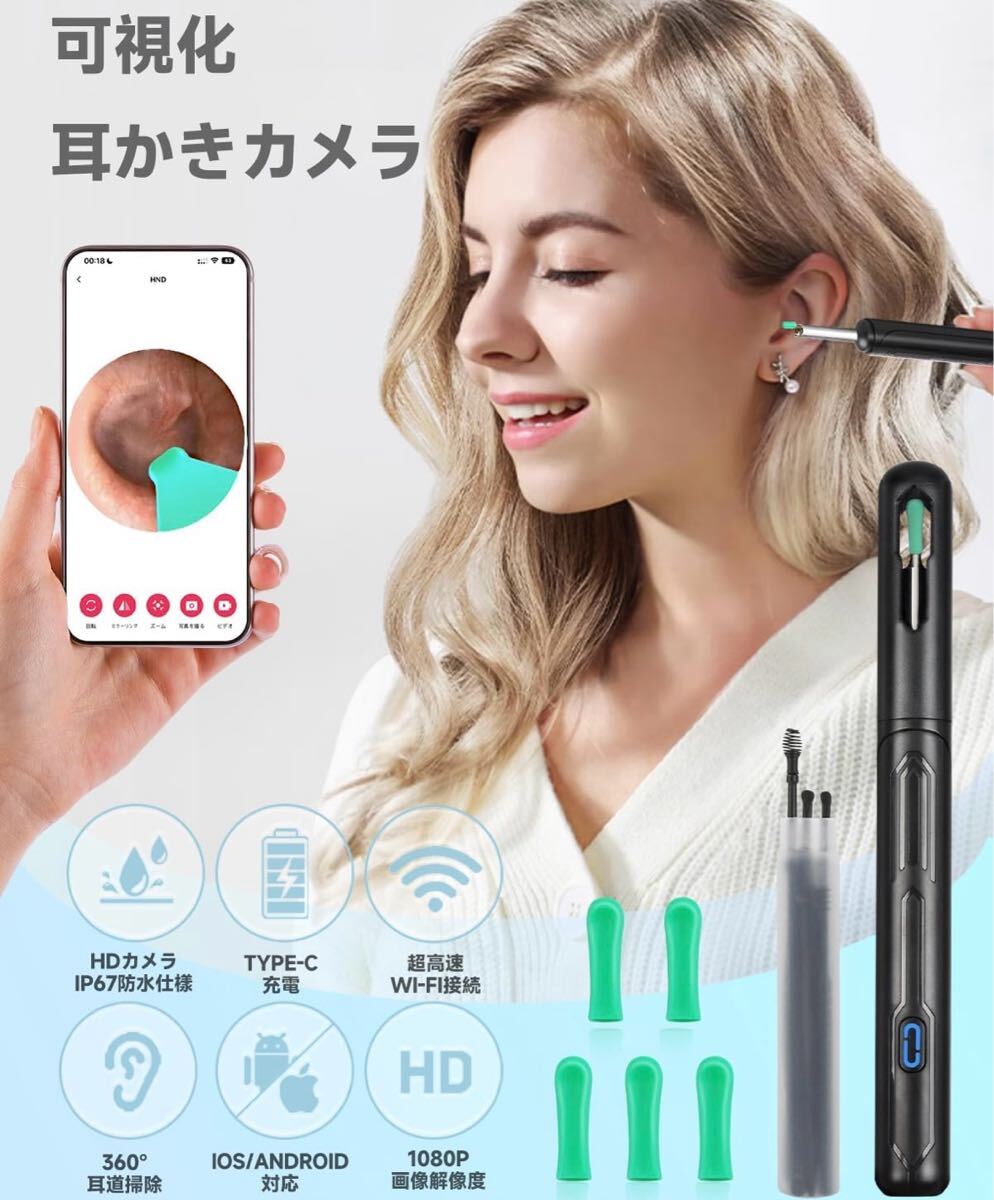 Product name: 耳かきカメラ 1500万画素 LEDライト 極細レンズ 耳掃除 防水 高画質 左右反転機能 録画/写真対応 type-C充電 子供 お年寄り WiFi接続